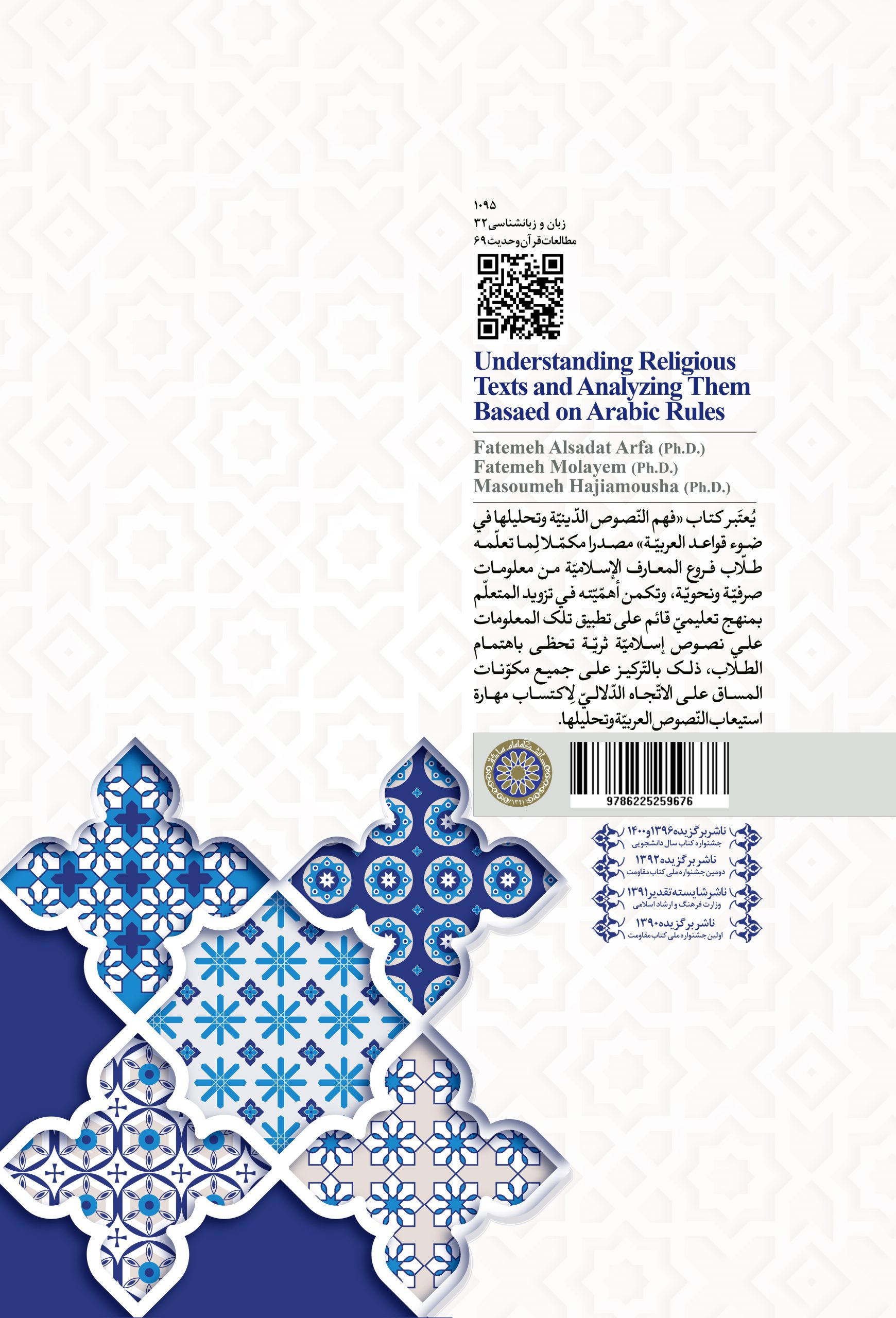 کتاب «فهم متون دینی و تحلیل آنها در پرتو قواعد زبان عربی» منبعی تکمیلی برای آنچه دانشجویان شاخههای معارف اسلامی از اطلاعات صرفی و نحوی میآموزند، به شمار میرود. اهمیت آن در این است که با روشی آموزشی، یادگیرنده را در بهکارگیری آن آموختهها در متون اسلامی اصیل یاری میدهد. این کتاب با تمرکز بر همهی جنبههای معنایی، به دانشجو کمک میکند تا مهارت درک و تحلیل متون عربی را به دست آورد.