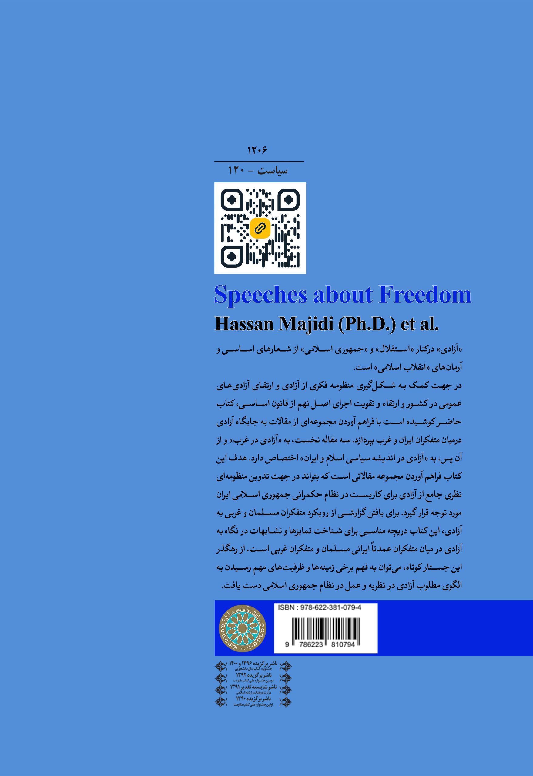 در جهت کمک به شکلگیری منظومه فکری از آزادی و ارتقای آزادیهای عمومی در کشور و ارتقاء و تقویت اجرای اصل نهم از قانون اساسی، کتاب حاضر کوشیده است با فراهم آوردن مجموعهای از مقالات به جایگاه آزادی در میان متفکران ایران و غرب بپردازد. سه مقاله نخست، به «آزادی در غرب» و از آن پس، به «آزادی در اندیشه سیاسی اسلام و ایران» اختصاص دارد. هدف این کتاب فراهم آوردن مجموعه مقالاتی است که بتواند در جهت تدوین منظومهای نظری جامع از آزادی برای کاربست در نظام حکمرانی جمهوری اسلامی ایران مورد توجه قرار گیرد. برای یافتن گزارشگری از رویکرد متفکران مسلمان و غربی به آزادی، این کتاب درجه مناسبی برای شناخت تمایزها و نتایجات در نگاه به آزادی در میان متفکران عمدتاً ایرانی مسلمان و متفکران غربی است. از رهگذر این جستار کوتاه، میتوان به فهم برخی زمینهها و ظرفیتهای مهم رسیدن به الگوی مطلوب آزادی در نظریه و عمل در نظام جمهوری اسلامی دست یافت.